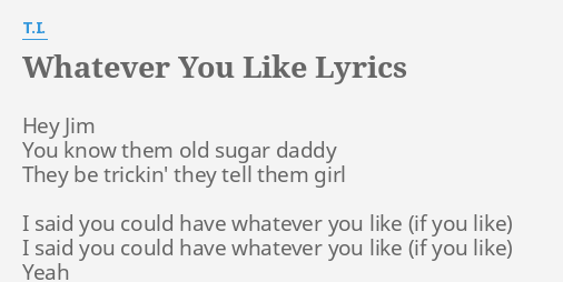 T I Whatever You Like Mp3 Download Lyrics from i1.wp.com Maybe you would like to learn more about one of these? Check spelling or type a new query. We did not find results for: Ti whatever you like lyrics.